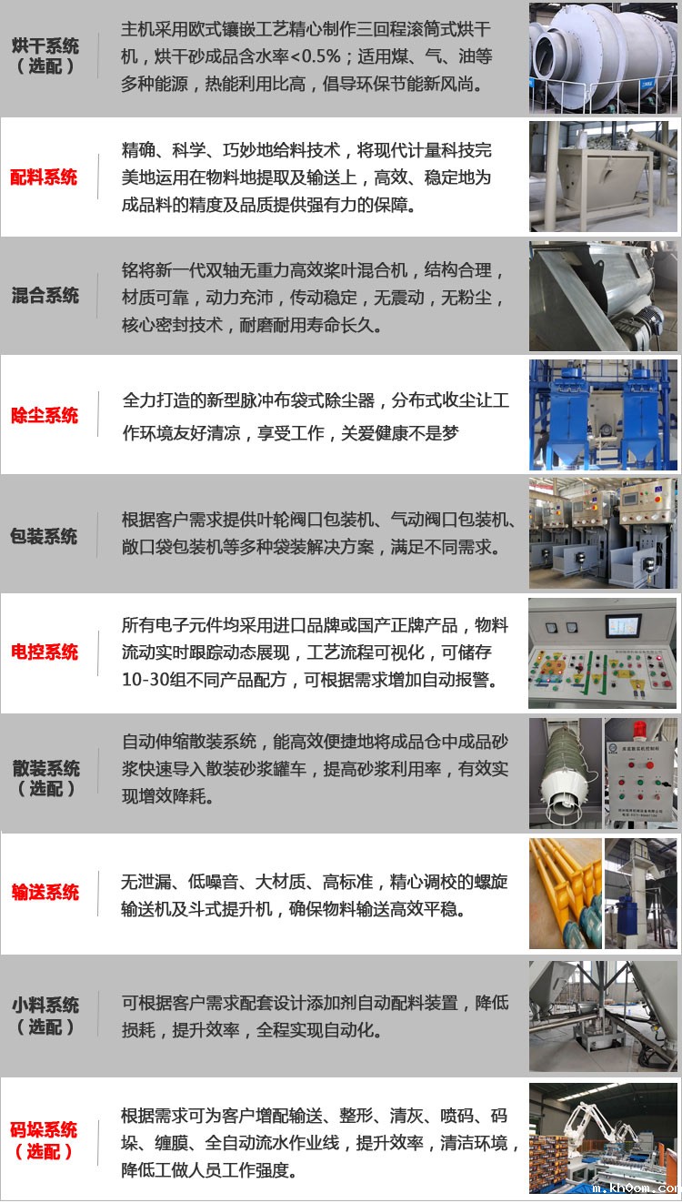 全自动干粉砂浆生产线吸收欧洲先进设计理念,整体设计采用塔式布局,管理系统植入最新模块化管理技术,人机对话功能及自动化程度大幅度提升。依据不同的配置,该生产线产量可达3-10万吨每年。