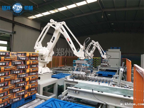 4、能耗低。通常机械式的码垛机的功率在25-35KW左右,而码垛机器人的功率为5KW左右。大大降低了客户的运行成本。