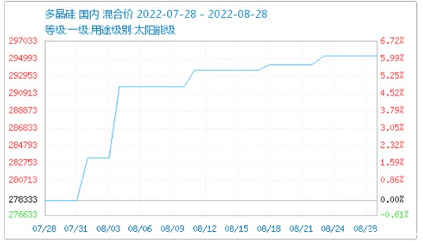 光伏产业链,多晶硅报价从8月初的278333元/吨涨至294993元/吨,大涨16660元。