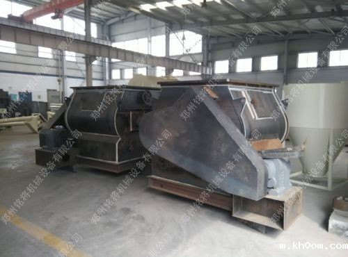 用在全自动干粉砂浆生产线上的双轴无重力混合机已经组装完毕,只等喷漆了。