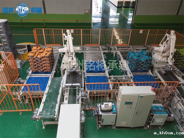 2、 相比较高位码垛机,码垛机器人占地面积少,布局灵活,可以设置在狭窄的空间,即可有效的使用。